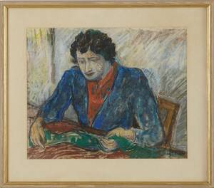 EINAR FORSETH (1892-1982): Sittande kvinna - hantverk, signerad Forseth, blandteknik på papper, 41x49 cm. 352537.