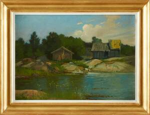 MONOGRAMISTEN JN: skärgårdsmotiv, olja på duk, signerad JN 96, ca 39x55 cm. Duk uppfodrad på pannå, retusch.