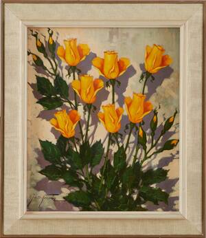JAN BOHUMIL POSPISIL (1898-1968): Stilleben med rosor, signerad Jan B Pospisil, olja på duk, ca 46x38 cm. 365153.