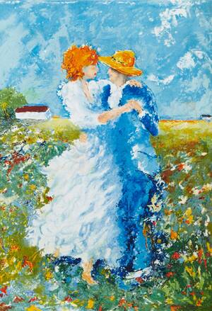 Karl Höglund (f. 1940), Sverige. Flickor. Signerad, färglitografi, EA-upplaga (Épreuve d’artiste). Bladets mått: 54x42 cm, yttermått inklusive ram: 76x61 cm. Karl Höglund, född 1940 i Läs mer...