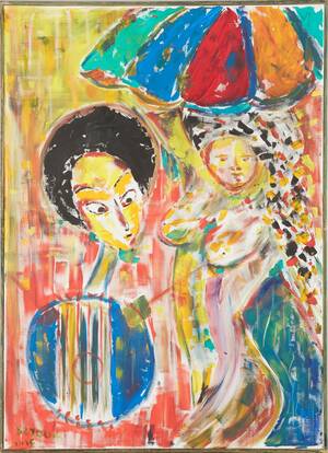 SEYOUM YOHANES ABEBE (född 1960): "Surprise", signerad och daterad Seyoum 2016, akryl på duk, ca 90 x 65 cm. 374111.