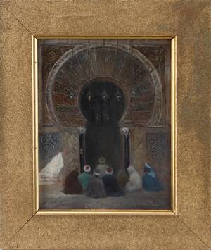 FRANS WILHELM ODELMARK (1849-1937): Motiv från Kairo, signerad FW Odelmark, daterad 1884, olja på pannå, 26 x 20,5 cm. 370189.