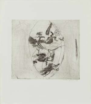 TORSTEN RENQVIST (1924-2007): "Mandorla", signerad och daterad T. Renqvist -64, etsning, 26/65, 21x24 cm. 361773.