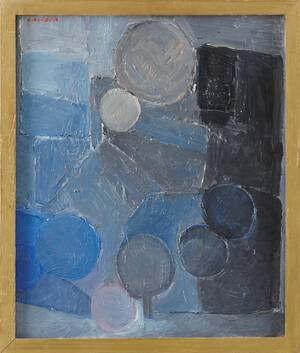 Gunnar Greiber (1919-2011), Sverige. Signerad, komposition. Olja på duk, 33x30 cm, yttermått inklusive ram: 53x50 cm. Gunnar Greiber, svensk målare född 1919 i Stockholm. Läs mer...