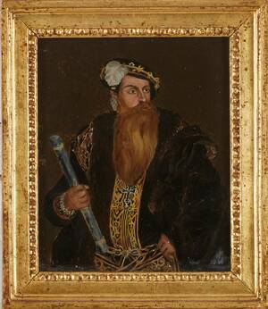 GLASMÅLNING, Gustav Vasa, 17/1800-tal, originalram, ca 17x14 cm. Slitage .