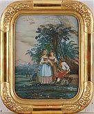OIDENTIFIERAD KONSTNÄR (1800-tal): Pastoral idyll, glasmålning, ca 25x19 cm