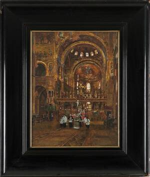 HEINRICH HERMANNS (1862-1942): "S Marco in Venedig", signerad, gouache med täckvitt, ca 60x45 cm. 392351.