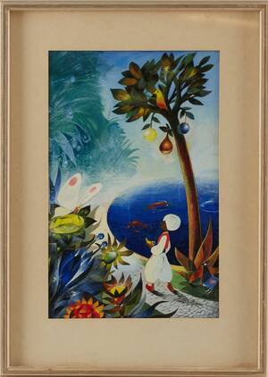 HANS ARNOLD (1925-2010): "Alladin", signerad Arnold, lackad gouache på kartong, 36x24cm. smärre ytskador.