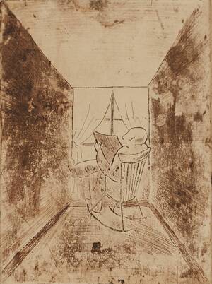 STURE LUNDBERG (1900-1930): "Ensam", etsning, bladmått 17x13 cm. Oramad, i passepartout.