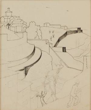 STURE LUNDBERG (1900-1930): "Italiensk stad", tusch och blyerts, bladmått 24x17 cm. Oramad, i passepartout.