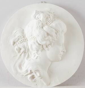PORTRÄTTMEDALJONG, gips, efter Sergel, kvinnoporträtt i relief, diameter 48 cm. 407496.