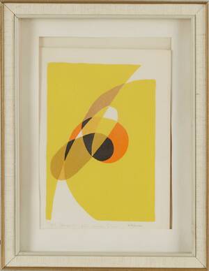 Pierre Olofsson, Komposition. Signerad Olofsson och numrerad 87/94. Färglitografi. 52,5 x 38 cm. Smärre ytslitage. Ej examinerad ur ram. Något vågigt papper. Litet märke. Läs mer...