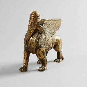 SKULPTUR, 1900-tal, kopia efter förlaga i Mesopotamia, brons, höjd ca 18, längd ca 20 cm. Slitage, huvudet med buckla, missfärgningar.