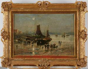 JEANNA BAUCK (1840-1926): Strandmotiv med figurer, signerad J Bauck, olja på duk, ca 36x52 cm. Krackeleringar.