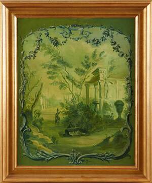OIDENTIFIERAD KONSNTÄR (1900-tal): Pastoralt landskap efter äldre förlaga, olja på pannå, 60x48 cm. 424319.