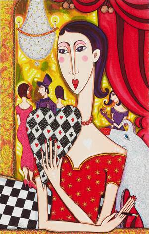 ANGELICA WIIK (född 1960): "Hjärter dam", signerad Angelica Wiik, 60/290, färglitografi, ca 61x39 cm, oramad. 432284.