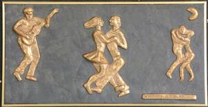 ASTRI BERGMAN TAUBE (1898-1980): Relief, figurscen, förgylld brons på skiffer, gjuten hos Hyltans Metall Konstgjutning, signerad Astri Bergman Taube, daterad -77, numrerad 230/240, rammått 55x34,5 Läs mer...