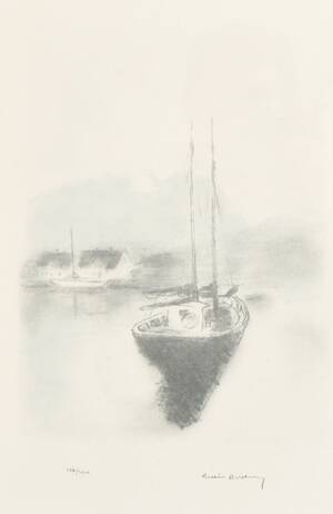 Gustav Rudberg, litografi, provtryck, a tergo titulerad "Skuta vid kaj, Hven", signerad, mått med ram ca 40 x 51 cm Läs mer...