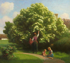 Hans Brasen. 'Hylden blomstrer'. Olie på lærred. Sign. H. Brasen 1925. 54 x 59 cm. (70 x 75) Hidrørende fra jysk privatsamling.