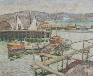 Hugo Lepik, Hamnvy. Sign. Olja på pannå 49 x 59 cm. Åldersrelaterat slitage. Läs mer...