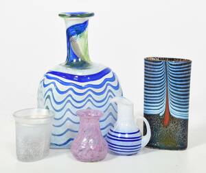 3 delar Ulrica Hydman Vallien, 2 delar Bertil Vallien. Smärre bruksslitage, samtliga signerade. Höjd 6 - 19 cm.