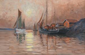 Yo Johansson (1897-1963), Sverige. Fiskeläge. Signerad. Olja på duk, Bildmått: 60x101 cm, yttermått inklusive ram: 72x112 cm. Yo Johansson (John Charles Johansson), svensk målare född Läs mer...