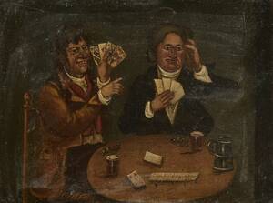Oidentifierad konstnär. 1800-tal, Kortspelare. Olja på pannå, 20x25.
