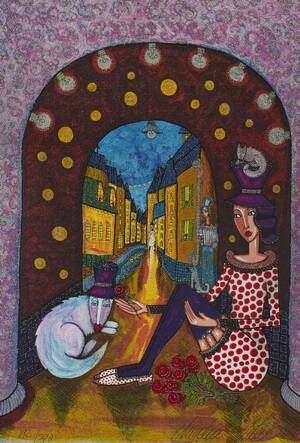 Angelica Wiik (f. 1960), Sverige. Signerad, färglitografi, numrerad, Varité, 55x85 cm, yttermått inklusive ram: 63x93 cm. Angelica Wiik, svensk målare född i Stockholm 1960. Läs mer...