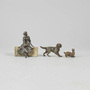 Skulpturer, 2 st, brons och patinerad zink, L=17 och mindre Läs mer...