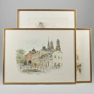 3 st, Jan Lundquist (f. 1935), Sverige. Signerad och numrerad 138/275, Uppsalamotiv, ca 46x62. Jan Lundquist, svensk målare, tecknare och grafiker född i Stockholm 1935.