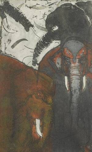Fagerquist, Elefanter, 1987, Bodhi I, 8/15. Motivet: 49x30.