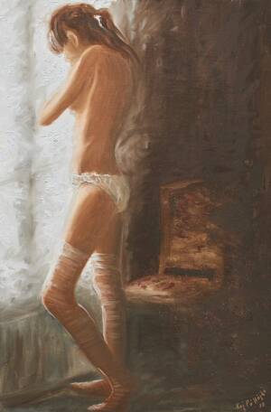 Kaj på höjden, Sverige. Flicka. Signerad, daterad 1988. Olja på duk, 117x78 cm.