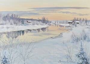 Bruno Karlsson (f. 1927), Sverige. 1980, vinterlandskap, 45x63. Bruno Karlsson,svensk målare, tecknare och grafiker född 1927, död 2020.