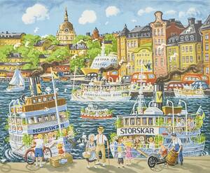Bert Håge Häverö, "Stockholms Ström". Färglitografi. Signerad Bert Håge Häverö och numrerad 86/360 med blyerts. I. 36 x 51 cm. Obetydlig skada i bildytans övre Läs mer...