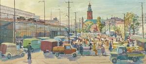 G Lindström, Klaratorget, Stockholm, signerad, 39x88.