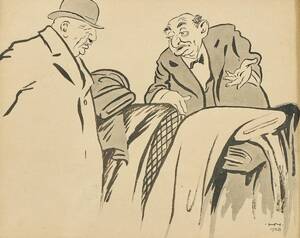 Vilhelm Bjerke-Petersen (1909-1957), Monogramsign V. b-p, -34, löst blad, bladets mått: 42x52. Vilhelm Bjerke-Petersen, dansk-svensk bildkonstnär, formgivare och keramiker född i Fredriksberg i Danmark. Läs mer...