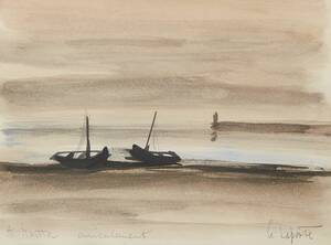 Georges Laporte (1926-2000), Båtar, 22x30. GeorgesLaporte, fransk bildkonstnär född 1926, död 2000.