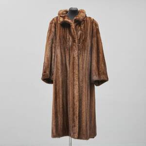 SAGA MINK, päls, helryckt mink, knäppes fram med hyskor, två handfickor, rygglängd ca 105 cm, bystvidd ca 158 cm, storl ca 40, etikettmärkt Saga Mink Läs mer...