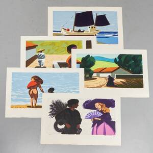 HENRI MATISSE, efter, 5 st, serigrafier, litografiska tryck, bildytan på figuren mot blå bakgrund, ca 50x33 cm. Några veck i kanter och hörn. Läs mer...