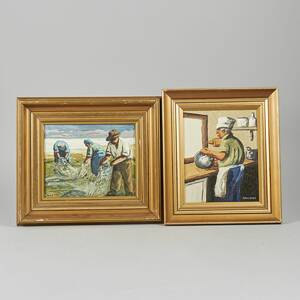 2 st. Boris Ninemae, fiskare och bagare, signerade, 26x22.