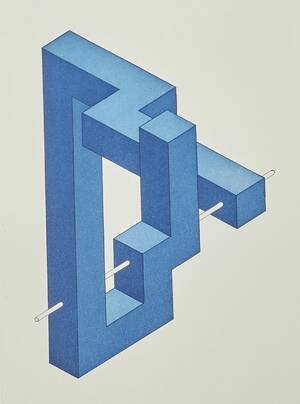 Omöjlig figur Signerad: Oscar Reutersvärd Numrerad: 10/60 Mått på bildyta: 72 x 50 cm Mått med ram: 92 x 68 cm Konditionsrapport: Mindre slitage på Läs mer...