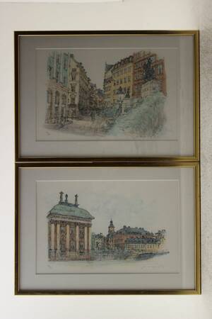 2 st. Jan Lundquist (f. 1935), Sverige. Stockholmsmotiv. Signerad, numrerad 290-upplaga, ca. Bildmått: 40x50, yttermått inklusive ram: . Jan Lundquist, svensk målare, tecknare och grafiker Läs mer...