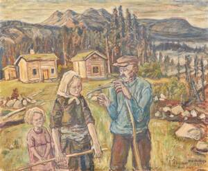 Olle Nordberg (1905-1986), Sverige. Landskap med gård. Signerad, daterad -36, Olja på duk, 76x96 cm, yttermått inklusive ram: 86x106 cm. Olle Nordberg, född 1905, död Läs mer...