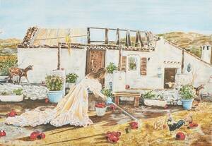 CAROLINE AF UGGLAS (1972): Gårdsmotiv med kvinnofigur, signerad C Ugglas, 222/225, färglitografi, bladmått ca 43x60, oramad. 814963. Läs mer...