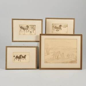 4 st. Acke Åslund (1881-1958), hästar, signerade, motivet: 19x25 + 8x13. Acke Åslund, född 1881 i Östersund, död 1958 i Stockholm, svensk målare och grafiker.