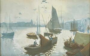 A Wiklander, 1922, hamnmotiv, 32x50.