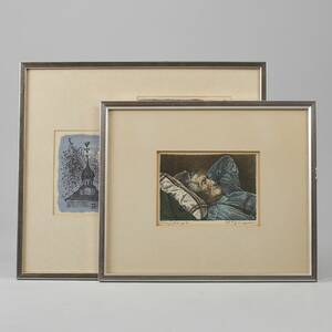 Zamy Steynovitz, färglitografier, 2 st, signerade och numrerade 257/275 resp. 251/275, bladmått 17,5x13,5 cm. Elling Reitan, färglitografi, signerad och numrerad 158/275, bildmått 15,5x11,5 cm.Skada på Läs mer...