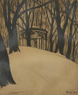 Olle Hjortzberg (1872-1959), Sverige. Ekotemplet, Haga, 65/100, signerad, 1922,27x23. Gustaf Olof, Olle, Hjortzberg, född 1872 i Stockholm, död där 1959, svensk målare och tecknare.