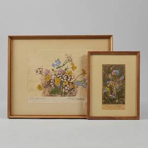 2 st, Maja Fjaestad (1873-1961), Sverige. Bladets mått: 14x7 respektive 17x21. Maja Fjaestad, född 1873 i Hörby, Skåne, död 1961 i Arvika, svensk målare och konsthantverkare.