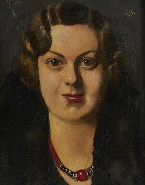 Oidentifierad konstnär. Monogramsignerad, 1933, Kvinnoportrrätt. Olja på pannå, 23x19 cm.